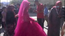 Küre, düştükten sonra pistte dans eden gelin ve 2 misafire çarptı.