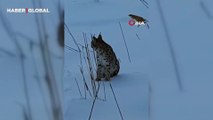 Karlı arazide görülen vaşak vatandaşları heyecanlandırdı