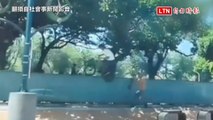 當極限運動場!阿逗仔18日台中公園耍特技 單車騎上圍籬警勸離(翻攝自「社會事新聞影音」、警方提供)
