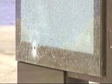 Los escombros han caído sobre la vereda de un bar,