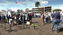 00:00Miles de manifestantes salieron el domingo a las calles en las Islas Canarias, en España,