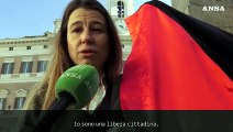 Medio Oriente, bandiera della Palestina davanti a Montecitorio