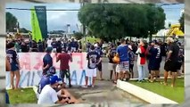 Torcedores aguardam chegada dos jogadores e protestam no aeroporto