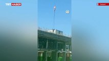 İnşaat işçisinin vinç halatındaki tehlikeli hareketi kamerada