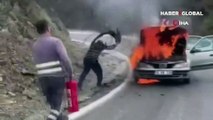 Antalya'da alev alan otomobil vatandaşlar tarafından söndürüldü