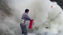Şişli’de alev alev yanan otomobile yangın söndürme tüpüyle müdahale