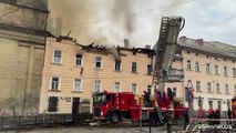 Attacchi con drone nel centro di Leopoli, in fiamme un palazzo