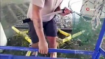 Harşit Çayı’na düşen tavuğu itfaiye kurtardı