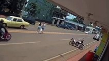 Graban cuando mujer sufre accidente en moto