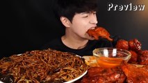 ASMR MUKBANG | SPICY BLACK BEAN NOODLES & SPICY BBQ CHICKEN | ASMR EATING COMPILATION
