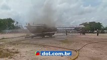 Barco pega fogo na marina de Belém