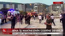 Kahramanmaraş'ta yıkımı yapılan ağır hasarlı bina iş makinesinin üzerine devrildi