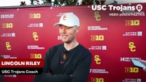USC Trojans Coach Lincoln Riley, Quarterback Jayden Maiava, and Defensive Tackle Devan Thompkins discusses the secondary's depth with the injuries on the team