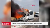 Hareket halindeyken alev alan yolcu minibüsü yandı