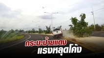 ระทึก ! กระบะป้ายแดงเข้าโค้งเสียหลัก พุ่งขึ้นเกาะกลางชนเสาไฟส่องสว่างหัก