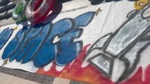 All’urlo «Noi siamo il 99 per cento» gli ambientalisti di Extinction Rebellion si sono posizionati in pochi istanti sotto i pili dei gonfaloni in piazza San Marco. Uno di loro si sta arrampicando sul pilo vicino alla Torre dell’Orologio. L’azione è iniziata a metà mattinata, attorno alle 10.30. La polizia locale e quella di Stato chiedono all’attivista di scendere: «Ti fai male!», gridano invano. Intanto, la Digos sta procedendo all’identificazione degli attivisti a terra. «Siamo qui perché in questi giorni è in corso il matrimonio di Bezos e Sanchez che rappresentano quell’uno per cento di ricchi che sfrutta il Pianeta. Non chiediamo donazioni alla città, ma un regime fiscale che tassi i ricchi per darlo a quel 99 per cento di popolazione che sta subendo gli effetti dannosi del capitalismo sfrenato».