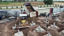Interesting Small Machinery Filling a Big Sink Holes Water, Dump Trucks And Small Dozer