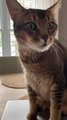This 10-month-old black dwarf kitten, Luna, begged to get on the bed, staring adorably at her owner and softly meowing. When the owner picked her up and placed her on the bed, Luna immediately lunged at the owner's face, despite the owner confirming whether she would attack.