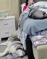 Hilarious Husky Defends Baby's Naptime!