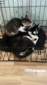 husky dog fun with cat