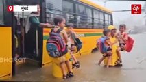 मुंबईत मुसळधार पावसानं हाहाकार: पावसाच्या पाण्यात अडकली बस; पोलिसांनी खांद्यावर घेत विद्यार्थ्यांना काढलं बाहेर