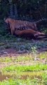 Sariska tiger reserve, the biggest size of male tiger kills a cow #wildlife #shorts #tigervscow