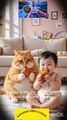 master cat take care a cute 🥰 baby