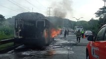 Se incendia autobús de la Policía Nacional en el Corredor Norte, en el ramal de Madden