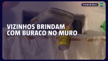 Vizinhos mantêm buraco no muro para passar cerveja e histórias