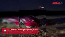 Otomobil bataklığa saplandı, sürücü son anda kurtuldu