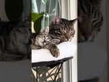 Adopted Kitten Cuddles and Lays Down With Adult Cat in His Bed