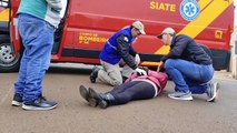 A queda de moto ocorreu na rua Souza Naves, proximidades da rua Manuel Antônio de Oliveira, no bairro Parque São Paulo, em Cascavel.