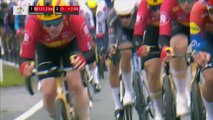 00:40Je voulais quand même vous montrer bien sûr la victoire de Jasper Philipsen, c'est au sprint qu'il va chercher évidemment ce maillot jaune