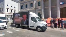Hazte Oír pasea por Madrid dos camiones con la lona de "Sánchez corrupto" retirada por orden judicial