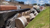 Caminhão carregado com bobinas tomba no Trevo Cataratas em Cascavel