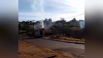 O combustível em chamas derramou na pista e no canal que passa pela comunidade Cosme Damião, em Saramandaia.