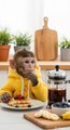 "Cute Baby Monkey Munches Fruits & Drinks – Adorable Animal Moment!"
