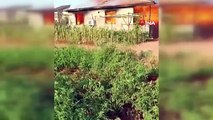 Hatay'da evin damında mahsur kalan inek vinçle kurtarıldı
