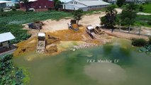 Bulldozer Komatsu Showing Power Pushing Stone fill the lotus flower Lake and Dump truck 5T unloading