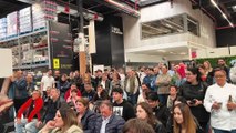 Ataque de la manifestación pro Palestina a la tienda de Zara en el centro de Pamplona