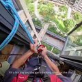 This air conditioner technician is working way above the ground!