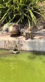Ducklings Use Turtle as Step to Climb Onto Land