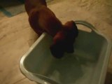 Ce teckel aide pour le ménage... Bon chien
