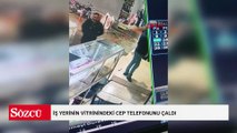 Fiyat sormak için girdiği iş yerinin vitrinindeki cep telefonunu çaldı