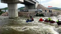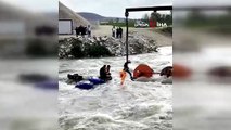 Dereyi traktörle geçmek isterken faciadan dönüldü: 10 işçi vinçle kurtarıldı