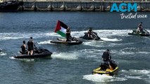 Pro-Palestine protesters on jetskis block Israeli-owned cargo ship