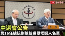 中選會公告第16任總統副總統選舉候選人名單 宣布競選活動期間
