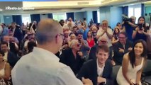 Matteo Ricci accolto da applausi e abbracci a Fermo il giorno dopo l'avviso di garanzia