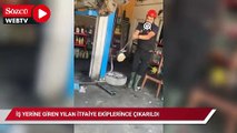 KAĞITHANE'de bir iş yerininin içerisine giren yılan itfaiye ekipleri tarafından yakalandı. İş yerindeki kişinin, camı tekmeleyerek yılanın içeriye girmesini engellemeye çalıştığı anlar cep telefonu kamerasına yansıdı.