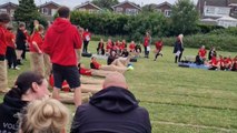 Funny moment as mum takes a tumble during a race at daughter's sports day event